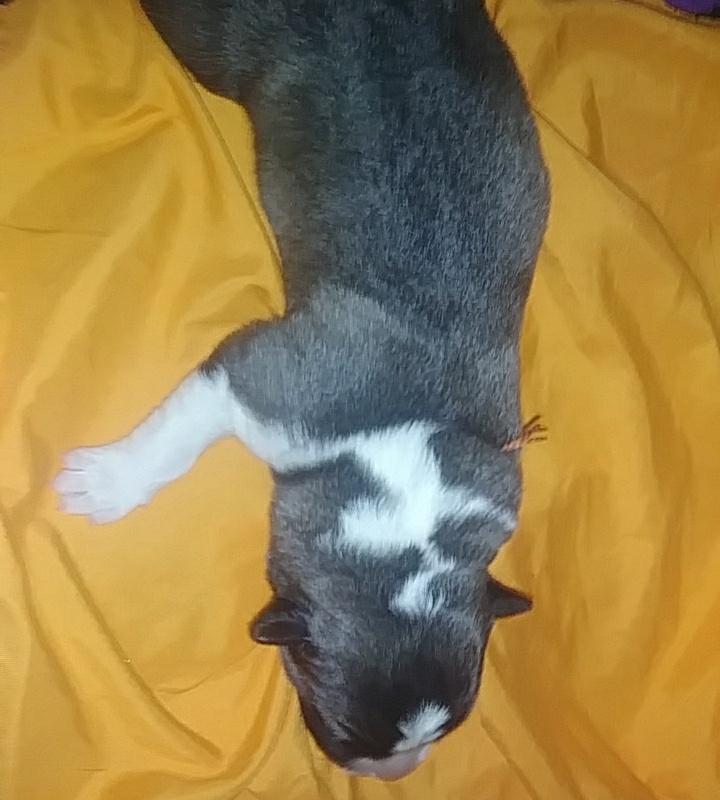 A 0 anno(i), 2 mese(i) e 15 giorno(i), Hori-Son Sonnie, Siberian Husky maschio , pesato 5.77 kg.