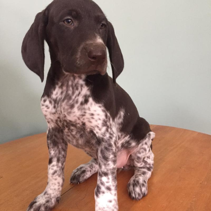 A 0 anno(i), 4 mese(i) e 16 giorno(i), Agapanthus, Puntatore tedesco a pelo corto femmina , pesato 18.1 kg.