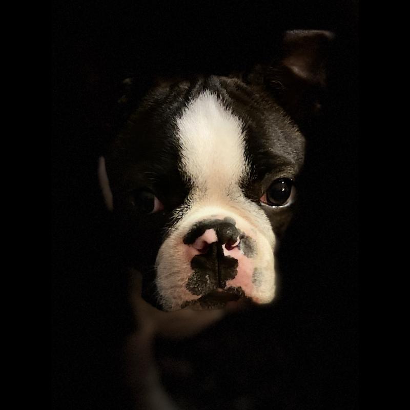 A 0 anno(i), 11 mese(i) e 22 giorno(i), Tommy, Boston Terrier maschio , pesato 12.1 kg.