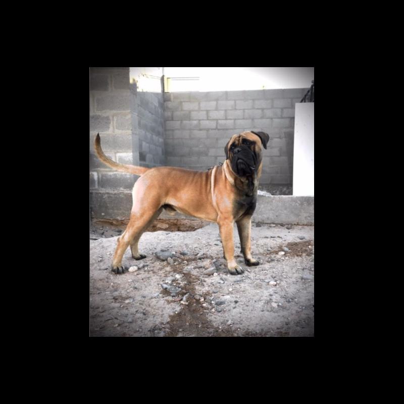 A 0 anno(i), 6 mese(i) e 10 giorno(i), OSKAR, Bullmastiff maschio , pesato 50 kg.